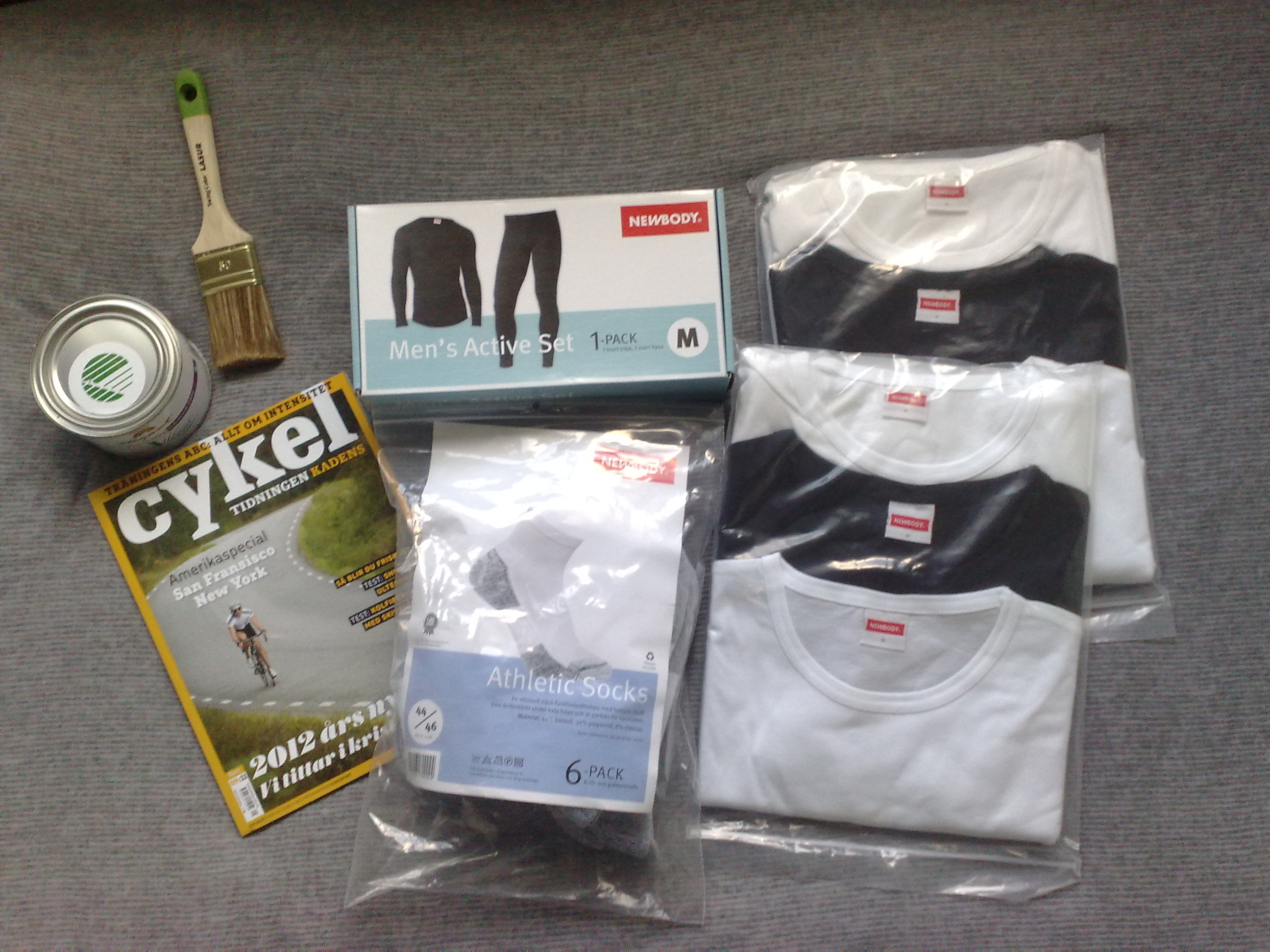 Rummet var nystädat och det låg en hel del grejer på sängen, bland annat ett nummer av cykeltidningen Kadens, strumpor, t shirts och ett underställ set i funktionsmaterial 😀